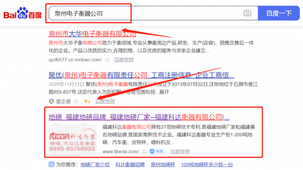 福建科*衡器有限公司關鍵詞排名保證在首頁效果