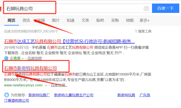 石獅市新奇特玩具有限公司選用我司企業玩具行業的網站優化產品,其SEO關鍵詞有玩具。覆蓋國內幾大主流搜搜引擎,占領電腦端、手機端,24小時快速獲取關鍵詞排名,搶奪流量。石獅市新奇特玩具有限公司成立于1998年,是經石獅市市場監督管理局審核的有資質的公司,其統一社會信用代碼:91350581705228275F。公司地址:福建省泉州市石獅市蚶江鎮古山工業區。