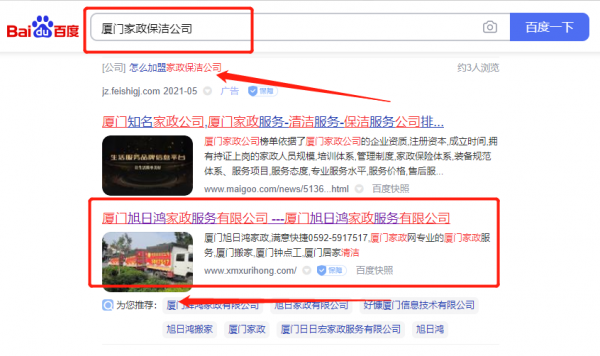廈門旭*鴻家政服務(wù)有限公司整站優(yōu)化排名效果展示
