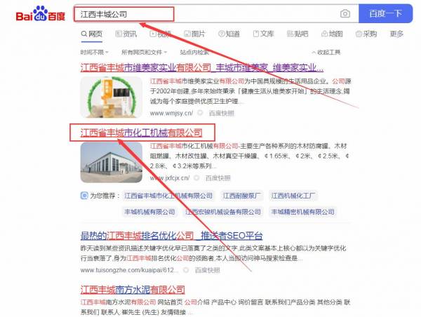 江西省豐城市*工機(jī)械有限公司百度關(guān)鍵詞排名保證在首頁(yè)效果