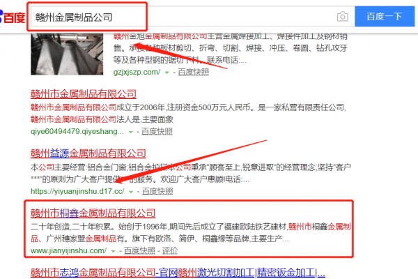 贛州市桐鑫金屬制品有限公司選用我司企業金屬制品的網站優化產品,其SEO關鍵詞有金屬制品。無論你關鍵詞是在20名內、30名內、還是50名內。我們都可以在最短時間優化至搜索引擎的首頁。提供后臺管理,排名查詢、關鍵詞管理、財務扣費一目了然,一鍵操作。贛州市桐鑫金屬制品有限公司成立于1996年,是經贛州市市場監督管理局審核的有資質的公司,其統一社會信用代碼:913607035840475303。公司地址:江西省贛州市贛州經濟技術開發區彩蝶路以東,金嶺西路以北。
