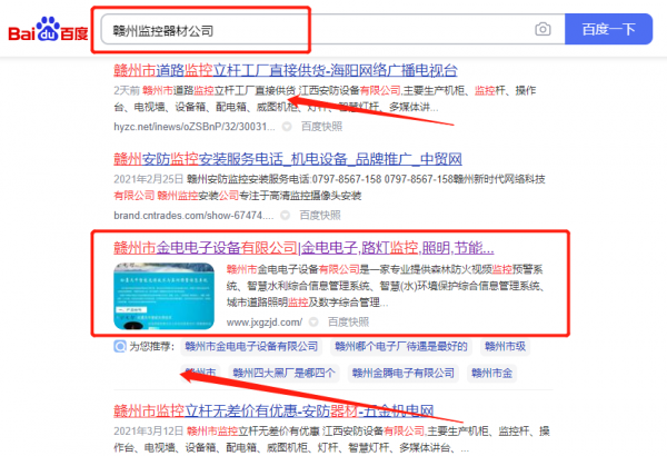 我們公司與贛州市*電電子設(shè)備有限公司合作中,對這個公司所經(jīng)營的監(jiān)控器材這個行業(yè)提供了網(wǎng)絡(luò)推廣,與該公司的合作,更多的客戶讓我們公司為其提供SEO推廣,通過每一次合作,我們公司不斷完善自己,同時(shí)希望合作伙伴在經(jīng)營的路上越來越好。