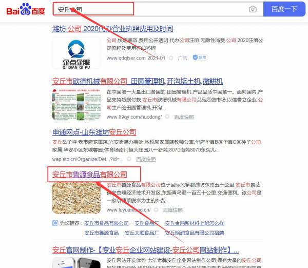 安丘市魯*食品有限公司網站優化排名效果展示
