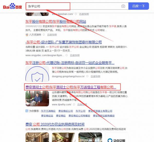 東平萬*恒業工程有限公司網站優化排名效果展示