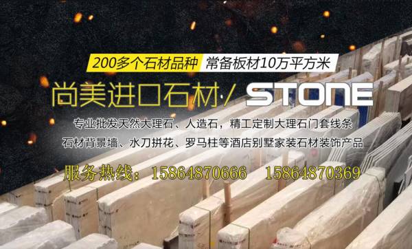 尚*石材是一家集批發進口石材大板與成品定制于一體的現代化石材企業。專業批發天然大理石、天然玉石板、人造石板材,國外礦山直供,真正的廠家直銷,低價供貨,品質保障。主營品種:奧特曼、白玉蘭、金卡曼、爵士白、雅士白、紫檀啡(檀香啡)、意大利灰、云朵拉灰、意大利金、金啡、深啡、西班牙米黃、香奈金、卡迪米黃、香檳玉、索菲特金等天然大理石、人造石板材。加工定制大理石背景墻、石材線條、水刀拼花、大理石門套、羅馬柱等酒店別墅家裝石材裝飾產品。公司常備板材10萬平方米、多達200多個品種。尚美公司擁有世界一流的先進石材加工設備,公司始終堅持“以質量求生存、以信譽求發展”的宗旨,堅持“薄利多銷”原則,以卓越的品質和優質的服務贏得了廣大客戶的青睞。