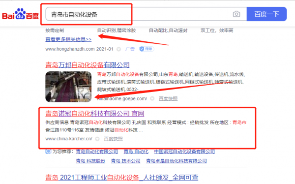 青島*冠自動化科技有限公司網(wǎng)絡推廣最快上詞效果展示