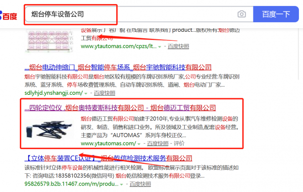 煙臺*邁工貿有限公司選用我司企業停車設備的網站優化產品,其SEO關鍵詞有停車設備。采用全球領先的關鍵詞三維云計算系統,智能關鍵詞報價查詢,徹底杜絕高價、朦朧價。自助提交優化任務,自由設定指定關鍵詞,指定排名位置,避免傳統銷售誘導。煙臺*邁工貿有限公司成立于2010年,是經煙臺市市場監督管理局審核的有資質的公司,其統一社會信用代碼:913706023**98669XN。公司地址:山東省煙臺市芝罘區珠璣中路6號。