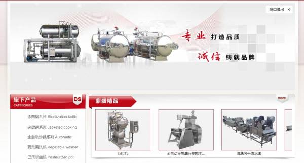 諸城市鼎*機械有限公司選用我司企業機械設備行業的網站優化產品,其SEO關鍵詞有 殺菌鍋系列,夾層鍋系列,真空包裝機,蔬菜清洗機,巴氏殺菌機。其特點是用很合適的展示方式、展示效果、站點框架,把客戶及其用戶很關心的問題突出表現;并以簡潔明朗的設計風格,清晰展現公司水平實力,確保一秒抓住目標用戶眼球,給用戶留下良好的第一印象。諸城市鼎*機械有限公司成立于2013年,是經諸城市市場監督管理局審核的有資質的公司,其統一社會信用代碼:9137078207**91038R 。公司地址:山東諸城市經濟開發區橫五路東首。