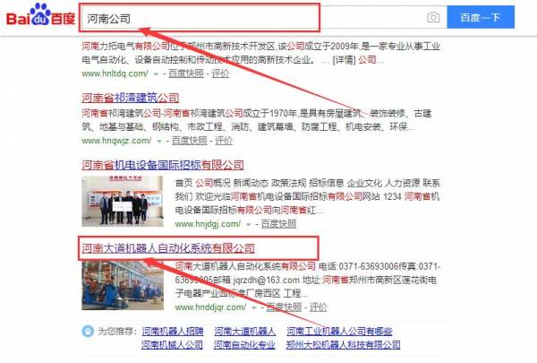 河南大道機器人自動化系統(tǒng)有限公司和我公司簽訂百度快照排名項目