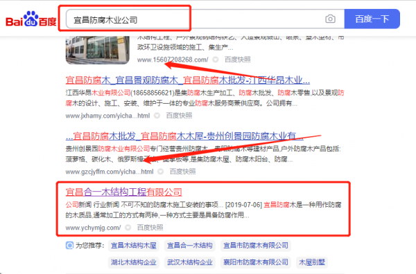 我們公司與宜昌*一木結構工程有限公司合作中,對這個公司所經(jīng)營的防腐木業(yè)這個行業(yè)提供了快速排名,與該公司的合作,更多的客戶讓我們公司為其提供SEO優(yōu)化,通過每一次合作,我們公司不斷完善自己,同時希望合作伙伴在經(jīng)營的路上越來越好。