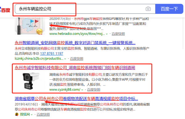 永州市*宇智能科技有限公司選用我司企業車輛監控的網站優化產品,其SEO關鍵詞有車輛監控。一對一定制服務,產品經理在線支持,無憂售后,適用于各個企業,提供一站式網絡營銷服務。百度搜索引擎優化,提升品牌關鍵詞的正面內容信息展現,體現良好的口碑宣傳。永州市*宇智能科技有限公司成立于2018年,是經永州市市場監督管理局審核的有資質的公司,其統一社會信用代碼:91431100MA4**JYP4W。公司地址:湖南省永州市道縣小康二路1號。
